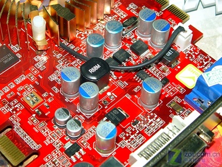 做工部分,采用了公版改进版的设计,电气性更加出色。显卡的供电采用核心与显存独立的供电设计,用料上使用了低端显卡中少有的三洋固态电容,配合R68M全封闭的电感,为显卡的稳定性提供了有利的保障。