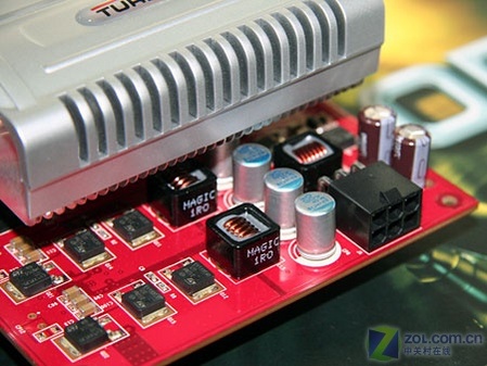 做工部分,显卡基于非公版解决方案,整体做工扎实,布局合理,焊点均匀。显卡采用核心/显存分离式供电,搭配大量铝壳电容和抗干扰能力强的封闭式电感线圈,保证了显卡工作的稳定,此外,高端显卡的外接辅助供电接口也出现在这款显卡上。