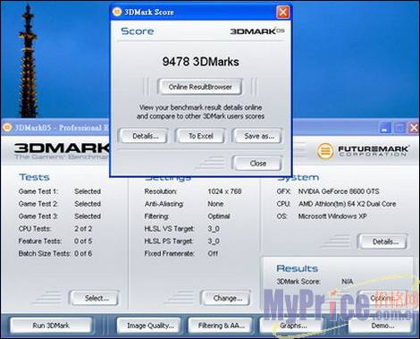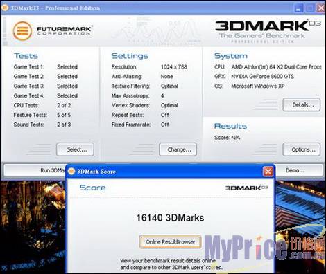 在CPU为X2 3800,512M DDR667双通道的平台下,这款显卡的3DMark05分数为9478,3DMark03分数为16140,这个分数仍旧无法与7950相较,相信3DMark07发布后这款显卡才会发挥出真正的实力。