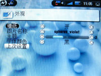 外观菜单可设置墙纸、主题、字体颜色,并且具备上一次设置恢复功能,通过上述选项调整,用户可设定自己喜欢的显示风格。电源菜单囊括了电池供电模式和电源供电两种模式,能够调节电源关闭时间、待机时间和背光关闭时间。