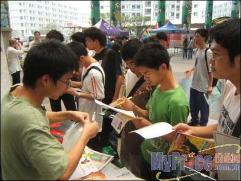 展台前挤满了前来咨询和参加现场问卷调查的学生朋友