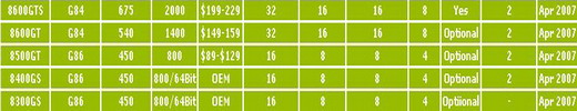 所以G84和G86正处在一个很尴尬的地位:在Direct×9时代毫无优势,在Direct×10时代毫无作用,如果说它们的存在还有一丁点意义的话,那就是帮助商家掏空用户的荷包吧...