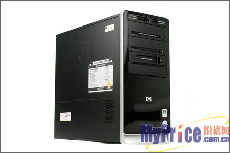 另外,这款机器配备有4个USB2.0,2个前置2个后置,15合1读卡器,轻松兼容时下所有的数码装备,主板集成10M/100M自适应宽带网卡,预装Windows Vista Home Premium,机器附带惠普的超薄多媒体键盘和光电鼠标。