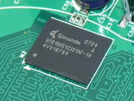 Inno3D采用四颗Qimonda HYB818H512321AF -1.4ns GDDR3显存,16MB x 32规格,容量为256MB,默认频率为1.4GHz。