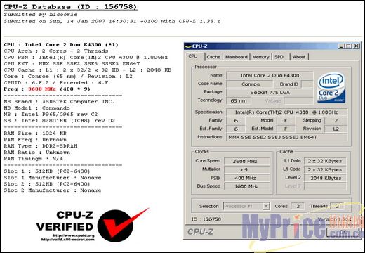 之前市场热卖的AMD Athlon64 X2 3600+在默认频率下不是E4300的对手,超频状态下E4300更是大幅超过AMD Athlon64 X2 3600+,因为这款处理器和受到DIYer追捧的E6300几乎没有区别,仅仅是象征性地把前端总线降到了800MHz,而E4300几乎都可以通过超频把前端总线提升为1200MHz。