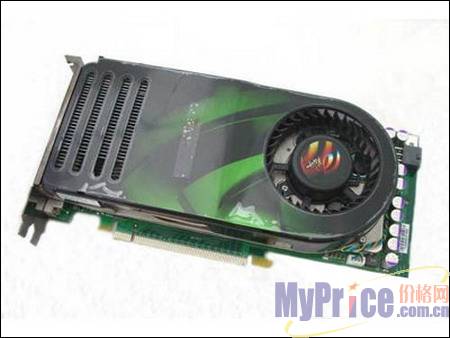显卡采用现代GDDR3 1.1ns颗粒,和公版完全一样,10颗显存颗粒组成320MB/384bit的显存规格,核心/显存默认频率为500/1600MHz,提供了64GB/s的显存带宽,这个频率还可以有一定的提升。