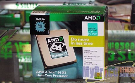 当前最为热卖的AMD处理器是Athlon64 X2 3600+,这款处理器大部分周期的产品都可以超频到3GHz,有很大的性能提升,并且配套的超频主板也比较廉价,所以AMD Athlon64 X2 3600+平台在当前最为超值。