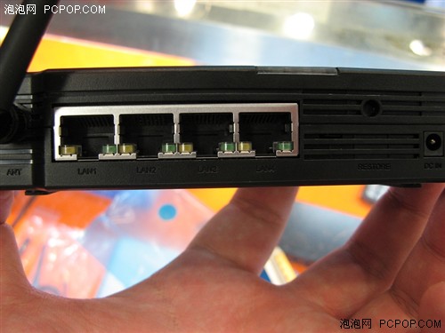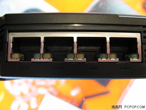 虽然身材小巧,但是也同样拥有4个LAN口和1个WAN口,4个LAN口的状态指示灯设计也很出色,内嵌在口的里边,真是美观又实用。