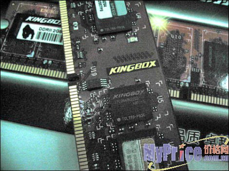 KINGBOX同样是一个来自台湾的品牌,这款金刚版 DDRII 667 1GB采用了双面设计,共采用了16颗颗粒,每颗颗粒的容量为64M。