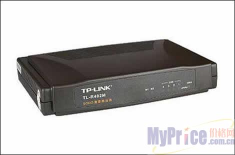TP-LINK TL-R402M采用了黑色塑料外壳,长158毫米、宽110毫米、厚32毫米。配置了可自动翻转的1个10/100M自适应全/半双工外部网接口和4个10/100M自适应全/半双工局域网接口,对于一般四人宿舍来说这些接口已经完全够用了。