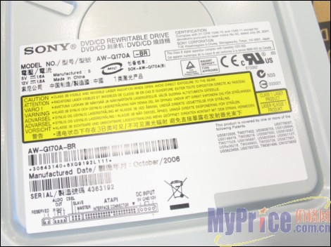 索尼AW-G170A性能突出,通吃市场上除蓝光之外的所有盘片。比较实用。索尼AW-G170支持18X DVD+/-R写入、8X DVD+RW复写、6XDVD-RW复写、8X DVD+/-R DL写入和12X DVD-RAM写入;CD方面,支持48X CD-R写入和32X CD-RW复写。