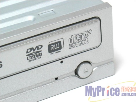 在前面板的标识上,可以看到三星 TS-H652M全能光雕刻录机支持包括DVD-RAM在内的多种盘片格式。规格上TS-H652M采用了双层刻录(Double-Layer)技术,内建2MB缓存,支持业界最高的18X DVD+\-R、48X CD-R刻录和32X的CD-RW刻录,同时DVD-R DL刻录速度达到8X,DVD-RAM刻录速度达到12X。