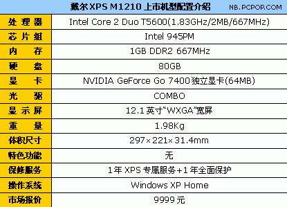 小编点评:戴尔XPS M1210最大的卖点就是??12.1英寸小屏幕机型+NVIDIA GeForce Go 7400独立显卡。由于尺寸和散热等原因,12.1英寸小屏幕笔记本一般很少配备独立显卡。因为,如果处理不好,很可能出现“画蛇添足”或者“反而影响机器性能”的情况。目前,戴尔公司已经把这款机器的内存,免费升级到了1GB DDR2 667MHz,价格仍然是9999元。喜欢12.1英寸小屏幕机型的朋友,一定不要错过这个好机会。