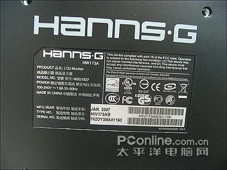 瀚视奇HW173A 标签 性能方面,瀚视奇HW173A采用了17英寸宽屏16.2M色的面板,点距为0.255mm,对比度为500:1,响应时间为主流的8毫秒。面板提供与19寸宽屏相同的1440*900最佳分辨率,可视角度水平为140度,垂直为130度。而且,HW173A还通过了TCO'03、能源之星、CCC、FC、GS、CE等认证,相对于市场上其他液晶产品来说,认证还是相当齐全的。