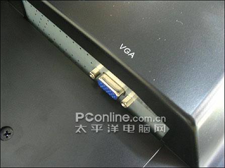 瀚视奇HW173A背部厚度较厚,这是由于这款显示器采用了内置电源适配器设计,但是HW173A在散热方面的处理却非常的理想,顶部和边侧均有散热孔安排,在防尘基础之上,热量发散效果非常理想。