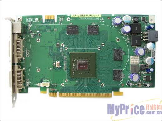 华硕NX8600GTS采用核心和显存供电分离的方案,显卡尾部有大量高品质固态电容,为显卡提供了充沛的电力,并且使显卡的使用寿命大大延长。GeForce 8600GTS的标称功耗为71W,PCI-E接口提供的75W已经可以满足需求,不过考虑到超频的需要,华硕仍旧提供了一个6PIN的外接电源接口。