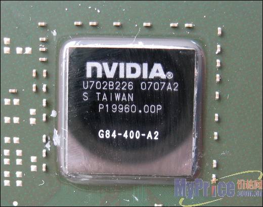 拆下散热片后我们可以看到G84核心和环绕的四颗显存。