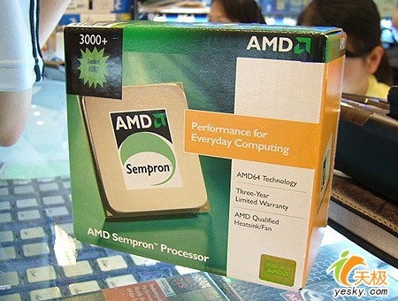 AM2接口的产品包装重新进行了设计,包装采用黄绿相间的色彩进行搭配,颜色鲜明亮丽,较939接口的闪龙相比,包装盒明显变小。另外,产品的接口,型号以及处理器的编号都可以在包装盒上方便的查找。AM2 Sempron 3000+的实际主频为1.6GHz,二级缓存为256KB,采用Manila的核心,电压介于1.35V~1.4V之间,功耗为62W,产品外频为200MHz,倍频为8,支持MMX、SSE、SSE2、SSE3以及X86-64指令集,内建DDR2双通道内存控制器,最大支持DDR2-800的内存。