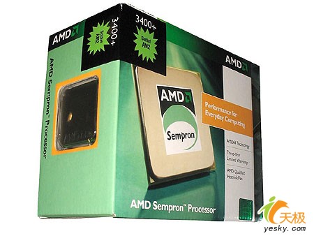 AMD Sempron 3400+是近期降价幅度较大的一款产品,依旧采用AM2闪龙处理器的外观设计风络,依然是90nm工艺制程,实际主频为1.8GHz,外频为200MHZ,倍频为9,HT总线频率为800MHZ,工作电压为1.4V,设计功耗为62W,支持MMX,3DNow!,SSE,SSE2,SSE3,x86-64指令集。