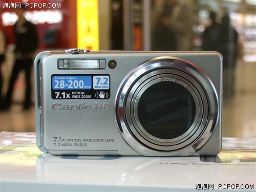 R6依然采用的724万有效像素1/2.5英寸的CCD,具有7.1倍的小长焦,广角端为28mm,微距为1cm。R6的最高感光度为1600,可以手动调节;同时它还具有光学防抖功能,可以轻松实现“双重防抖”。