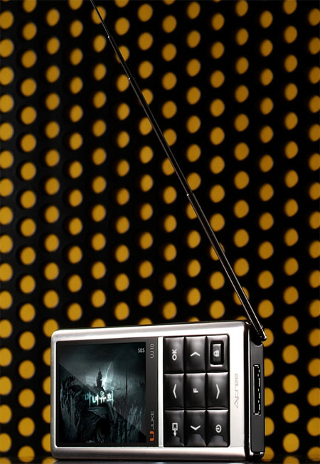 ATREE UJ10采用2.2英寸320×240像素的QVGA屏幕26万色。ATREE UJ10通过屏幕可以显示JPEG、BMP、GIF的图片,播放AVI、WMV格式的视频文件,以及播放接收的T-DMB的数字电视节目。