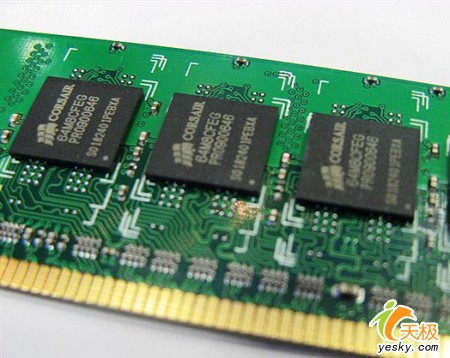 颗粒方面,该内存采用的是标识有“CORSAIR”(海盗船)字样的FBGA封装的顶级颗粒,采用双面16×64MB颗粒的封装形式,由于内存颗粒表面已经打磨成海盗船的LOGO,因此关于内存颗粒的生产厂商以及运行时序,只有上机后通过软件才能获取。该款内存还享有终生质保的金牌服务,为您解除了购买后的后顾之忧,感兴趣的朋友可以到各大电子市场去看看。