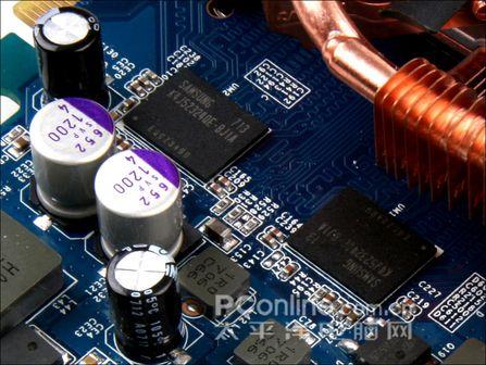 影驰 8600GTE 魔影在显存方面,采用了4颗SAMSUNG 1.0ns的DDR3高速显存颗粒,组成256M/128bit的显存规格,显存频率达到2G之高。