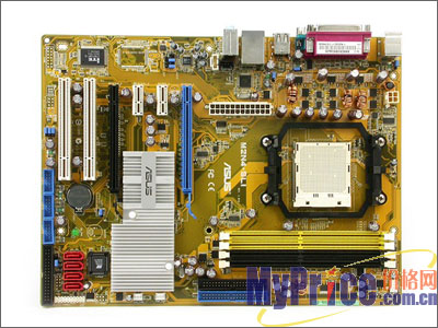 在外观方面,经典的黄牛色PCB大板设计很容易令人联想到华硕的设计风格,扎实的用料和做工也在华硕 M2N4-SLI得到很好的体现,该板采用NVIDIA nForce4 SLI芯片组设计,支持AM2接口的Athlon 64 FX/Athlon 64 X2 /Athlon 64以及Sempron全系列处理器,支持2000/1600MT/s HyperTransport总线。同时我们能看到在主芯片上有一块巨大的散热片,避免了主板风扇发出来的噪音,也减少了风扇使用过程中可能会出现问题的机率,足以体现出华硕精益求精的设计理念。