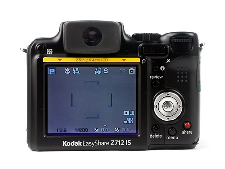 这款柯达Z712 IS可以说是之前Z710的升级版本,有效像素维持前作的水平,采用一块1/2.5英寸、710万有效像素的CCD传感器。但在镜头品质上却作了进一步的提高,由原来的10倍光学变焦提高为现在的12倍光变,焦距相应地提高为36-432mm(等效于35mm相机)。同时,最高感光度由原来的ISO800跃升为现在的ISO3200。Z712 IS的背后是一块2.5英寸、23万像素的LCD,采用SD/SDHC存储卡扩充容量,电力来源为专用锂离子电池,它的三围体积是103.6x74.2x69.7mm,重量为300g。