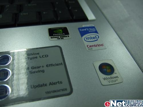 华硕A8S 下面我们来看一下这款笔记本的配置:Intel Core2 Duo T7300处理器,主频2.0GHz,4MB二级缓存,800MHz前端总线,Intel PM965芯片组,2GB DDR2 667MHz内存,160GB 5400转SATA硬盘,支持DX10的nVIDIA GeForce 8400M GS独立显卡,128MB显存,Super-Multi DVD双层刻录光驱,蓝牙模块,符合802.11n标准的Intel PRO/Wireless 4965AGN无线网卡模块,35万像素摄像头,14.1英寸高亮绚丽宽屏,预装正版Microsoft Windows Vista操作系统,机器重量为2.39kg。