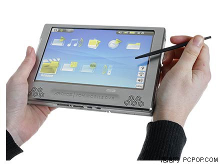 爱可视704的7英寸屏幕分辨率是800×480,已经达到DVD的清晰度标准,亮度很足而且视角宽阔,屏幕表面的磨沙处理显然是为了防止反光,但在一定程度上也影响了画面表现。在这款产品上播放视频或者浏览图片的切换都十分自如,你还可以对图片进行平移、放缩或者旋转操作。爱可视704的耳机插孔也可以用作AV输出接口,你可以用选配的电缆将其与电视机连接,在大屏幕上欣赏视频以及图片。