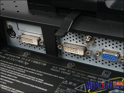 在接口方面,NEC 2190UXp则为用户提供了三路视频输入接口DVI-D/DVI-I/D-SUB。可以满足各种用户对视频接入的需求。独特的DC-OUT接口则可以为配套的外挂音箱进行供电。