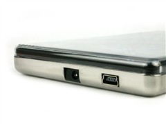 背面呈现出哑光效果的金属表面,感觉比较华丽。另外,硬盘顶端有电源接口和USB接口两个接口,一般情况下通过USB接口供电就可以了,电源适配器为选配配件,如果用户使用的主板型号较旧,通过USB接口供电可能会供电不足,就可以再购买电源适配器了。
