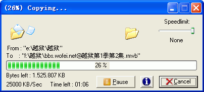 从某小软件实际传输1.93GB的视频文件速度测试结果来看,此移动硬盘在写入视频文件时,速度最高达到25000KB/Sec。而在移动视频文件时传输速度有所提高,可以达到26000KB/Sec。拥有快速的传输速度,使得一个容量达到1.93GB的视频只用1分30秒的时间就可以拷贝完毕。