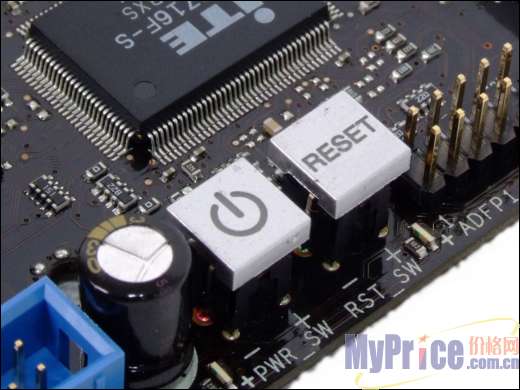 主板I/O输出部分配备了液晶显示屏,直观地显示出主板的运行情况,并且成为主板的点缀。主板上配备了“开关”、“重启”和“清BIOS”三个功能键,并采用了发光设计,夜晚看起来相当绚丽。