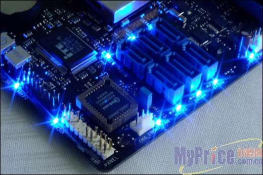 完美的散热模组是这款旗舰级主板的特色,主板南北桥和MOS上都有厚厚的纯铜鳍片,主板通过全铜热管把南北桥芯片和MOS贯穿起来,这样热量可以快速传递,保证了良好的散热性能,并且达到了零噪音的效果。