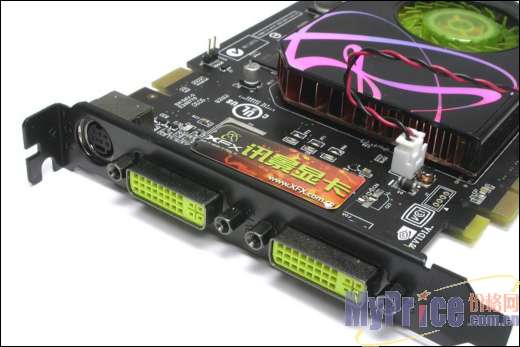 讯景7600GS GDDR3 128M采用标准的VGA+DVI+S-VIDEO设计,S-VIDEO方面是7Pin设计,支持色差输出。