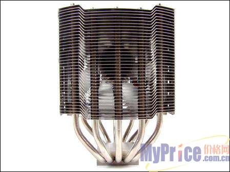 这款热管散热器名为Silent Square,采用五热管设计,五根长长的热管从底座贯穿到顶部,看来非常彪悍,与之搭配的是92mm静音风扇和74片散热鳍片,一起构成了强大的散热能力。