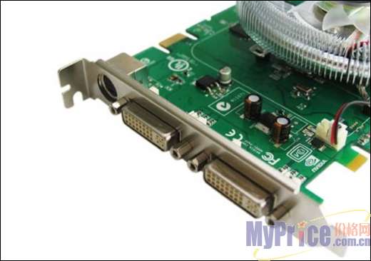 富彩8600GT采用惯用的绿色基板,PCB设计优良,电子元件排布合理,整体做工中规中矩。