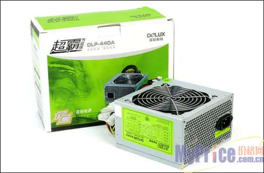 超霸节能版DLP-440A电源使用了12公分风扇,静音效果非常好,电源配备了1个6pin PCI-E显卡接口、4个D型接口和2个SATA接口,主板电源接口采用的20pin和24pin可互换型。