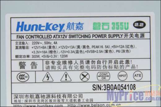 这款电源的额定功率为300W,符合ATX 12V 2.2规范,它支持Intel双核心处理器,转换效率高,待机功率更小,是一款加强型的环保节能PC电源,符合航嘉“节能新概念”的定位。