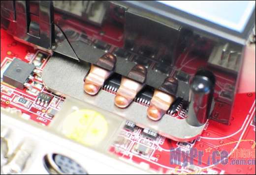 迪兰恒进这款X1950Pro采用了瑞士著名散热器厂商Arctic Cooling专为高端显卡设计的漩涡式热管散热器,散热模组相当庞大,噪音极小。