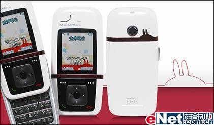 借着漫画走红的卡通造型流氓兔如今也推出了手机,而且在台湾还创下了骄人的销售业绩,如今迪信通将这款产品带到了我们身边,虽然这款机器是以流氓兔为卖点,不过手机造型已经从新设计,并不是完全照搬流氓兔。流氓兔手机的功能还是比较强大的,100万像素摄像头、MP3音乐播放器等主流功能一一具备,相信喜欢流氓兔的小朋友一定会对这款手机爱不释手!