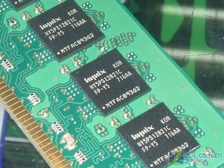金士顿1GB DDR2-667内存采用韩国现代(hynix)原厂内存颗粒,编号为HY5PS12821C,生产周期为2007年第16周。