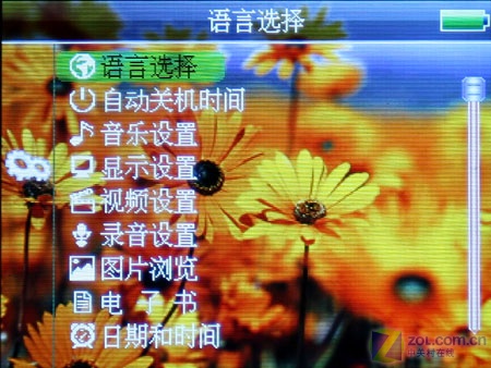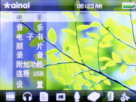艾诺 U60采用奥地利 AS3525芯片,产品的菜单系统相当出色,可操作性和系统的响应速度都令人满意。另外,U60的背景界面是相当有特色的,每个功能都有各自“专用”的背景图案,决不相同,但均是采用花草、风景等色调偏黄、绿的清新暖色调,加上出色的屏幕效果,看上去相当的怡人。