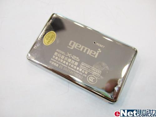 歌美X25采用超薄式设计,机身仅厚10mm,整体外型尺寸为80×48×10mm,重55g,便于携带。机身前面板采用了时下最流行的IMD模内转印表面工艺,此工艺是将图案印刷在薄膜上,通过送膜机将膜片与塑模型腔贴合进行注塑,注塑后有图案的油墨层与薄膜分离,油墨层留在塑件上而得到表面有装饰图案的塑件,在最终的产品表面是没有一层透明的保护膜的,膜片只是生产过程中的一个载体。这种工艺的优势在于生产时的自动化程度高和大批量生产的成本较低。机身的后面板采用镜面设计的不锈钢面板,金属感极强。整体外观看上去高贵典雅,颇具时尚韵味。