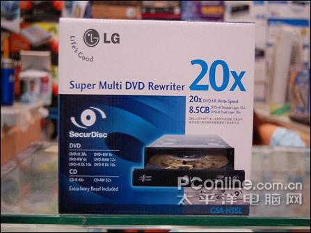 日立-LG数据存储(HLDS)从第二季度也开始量产20X刻录机,来自LG的GSA-H55L和H55N都是20X的新产品,两款产品稍有不同的是H55L支持光雕而H55N不支持光雕,售价上H55L定在359元,而不带光雕功能的H55N以更为实惠的299元上市。