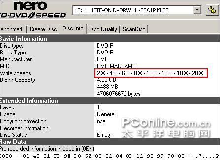 20X刻录机有了,但是市面上找不到真正标称可以20X刻写的可写盘片,那有什么盘片可以支持呢?在18X刻录机的评测文章《18X有多快?三星双18X DVD刻录机测试》中我们曾经提及过,市面上普通的16X盘片都能直接实现18X写入,那么20X是否也能如此呢?PConline评测室曾尝试多款市售主流16X盘片,很多品牌产品象威宝、三菱等都支持直接18X刻录,但是并不支持20X,所以大家购买了20X刻录机很有可能用不上20X刻录。