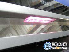 屏幕下方的BBS晶体透明装饰是这款产品另一大亮点之一,并且在屏幕中央的LOGO下面还有一个七彩流光彩灯设计,在画面播放时,可以不停的变化颜色,有红、蓝、黄等七种颜色可以变换。