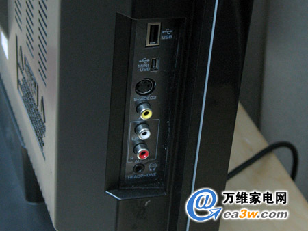 机身左侧提供了2路USB接口、1路S端子、1组AV输入以及耳机接口
